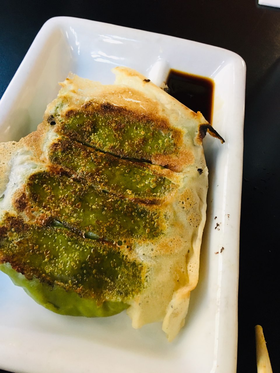 Their Tonkotsu Ramen pork noodles were delicious. That’s what I got. I didn’t like the black fungus on it, but I did like the pork. I accidentally gave all the pork to my cousin. We also got vegan Gyoza – it was green! Gyoza is like pot stickers and there was a delicious crusty layer of something on top of them. Papa got Vegan Stir-Fry Ramen. Papa and my cousin liked it a lot.