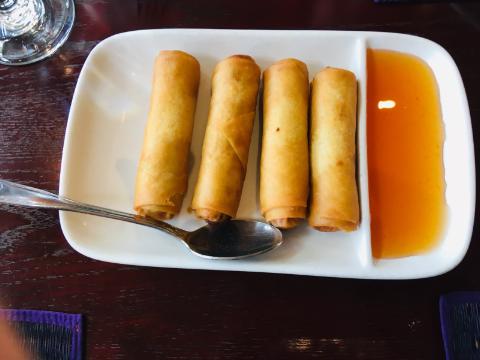 I went to Rom Mai Thai with my papa and my aunt Catherine. We went for lunch. It was a pretty big restaurant but it was not very full and we did not have to wait for a long time. The food was really good and I got mango juice which was also delicious.