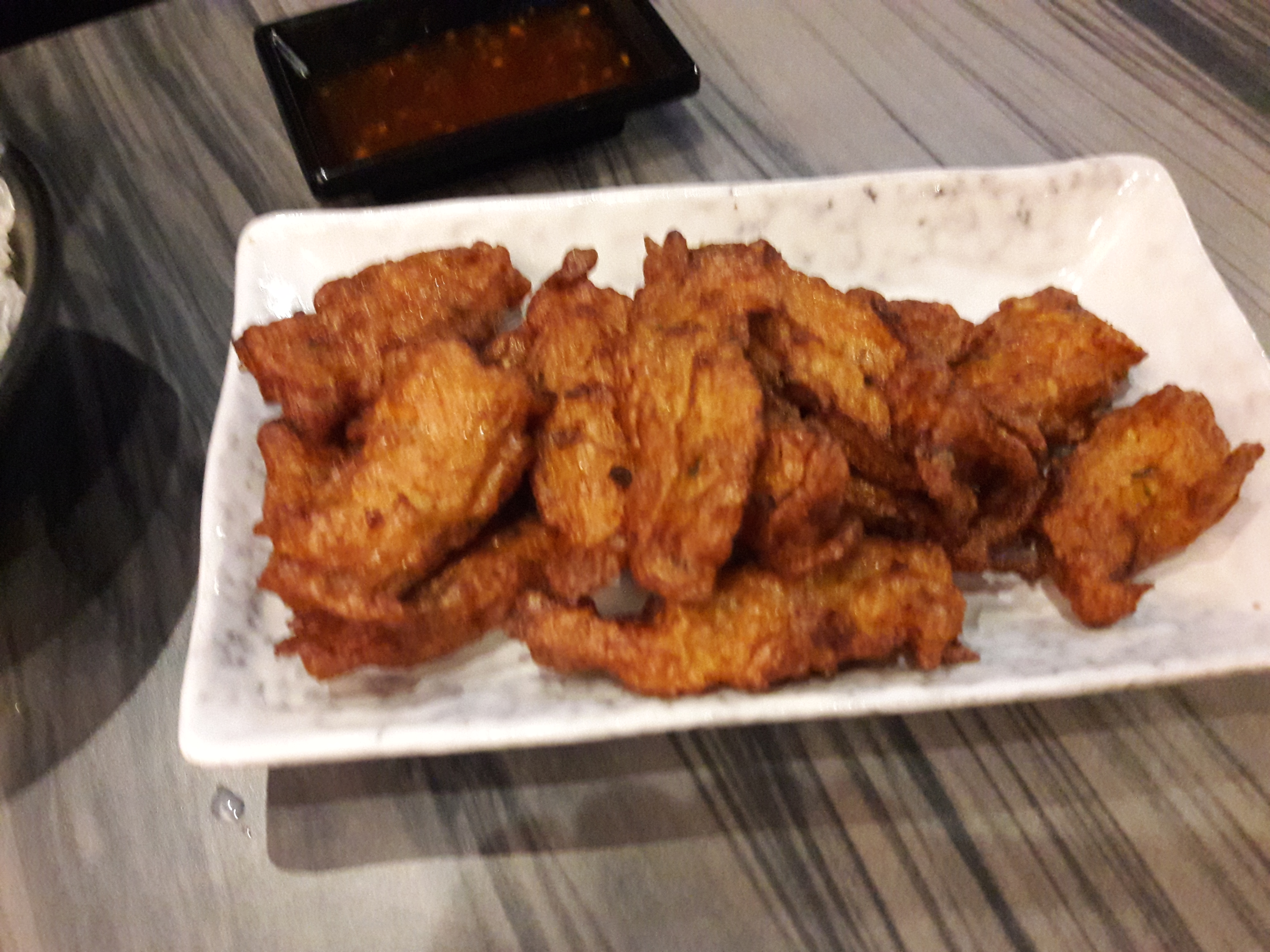 The brown sugar milk boba is pretty sweet but not very flavorful. It has black tapioca pearls in it which are chewy. The deep fried Taiwanese fish cakes are kind-of soft with a very thin crispy crust and a sweet sauce. I really liked the fish cakes. We tried the 19 GOLD fries, which have popcorn chicken and their house sauce. I’ve never had fries like that! They fries were crispy and good, and the chicken had a good breading on it. The sauce was sweet and there was the right amount for the rest of the food.